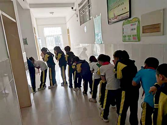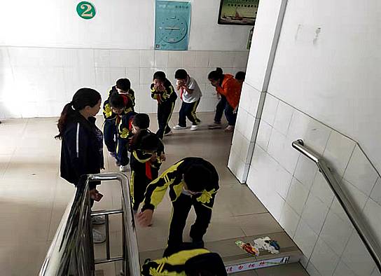 9时35分,急促刺耳的警报声突然响起,第二节正在上课的老师迅速组织学生撤离教室,按照学校规定疏散路线撤离教学楼。负责各楼层疏散的教师第一时间到达指定位置,对学生进行安全疏导。全校12个班级500余名师生有序、安全地来到操场集结,各班清点人数,向总指挥汇报。