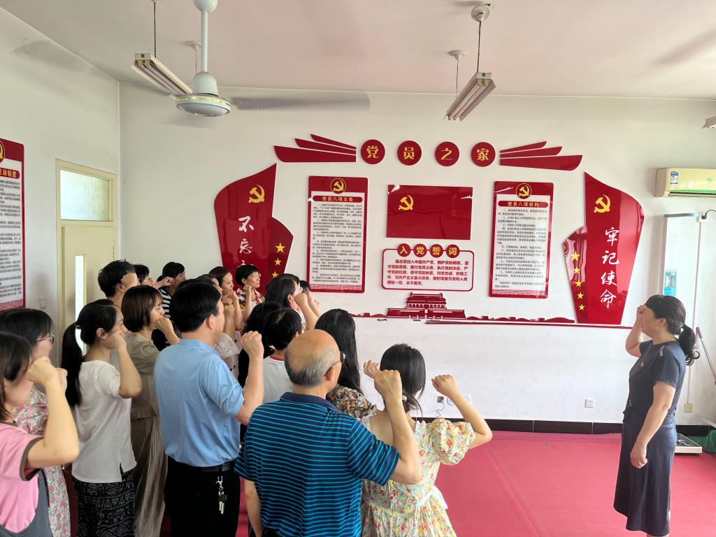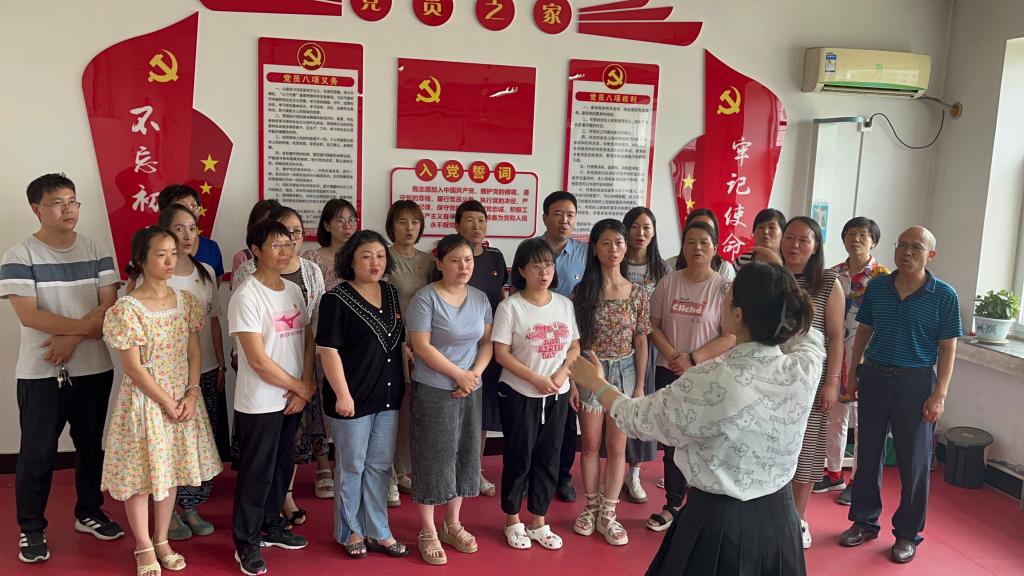 “没有共产党就没有新中国,没有共产党就没有新中国。共产党辛劳为民族,共产党他一心救中国……”在音乐老师庞帆的指挥下,全体党员放声高歌,在激情昂扬的旋律中回望历史,用歌声表达自己的心声,在这个具有重大意义的日子里向党真挚告白。