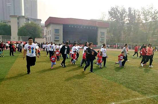 10月23日上午,幼儿园在学校西区操场举办了以“为爱奔跑 天天向上”为主题的第二届亲子马拉松运动会。