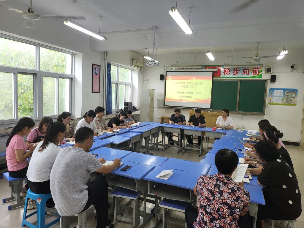 活动中,支部委员郭斐杰、李广州、李晓荣分别领学了“以学铸魂,坚定理想信念”“以学铸魂,筑牢对党忠诚”“以学铸魂,站稳人民立场”三方面的内容。通过学习,在场的每位党员都深受鼓舞,大家结合自身工作实际,积极发表自己的感悟,表示要结合自身工作在挑战自我中超越自我,以“时不我待,只争朝夕”的责任感,奋力开启提高教育教学质量的新征程。未能到现场参加主题党日活动的党员,也通过微信视频的方式参加学习并发表感悟。活动结束后,大家一起实地察看了小学教室墙壁整修进展情况,及时了解暑期施工进程。