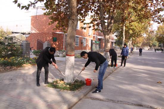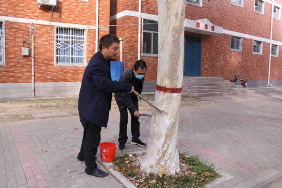 活动开始,后勤服务中心第三党支部群工委员栗志录以“树木刷白的意义”为题为大家上专题党课,同时,要求对树木统一涂白高度为1.2m。随后,大家2人为一组,带着桶、刷白涂料、刷子等工具,通过2个多小时的努力,为校园内200余棵树穿上“新衣”。大家不怕辛苦、不怕劳累,不嫌弃涂料溅满了衣服,齐心协力,以饱满的热情保质保量完成了校园内道路两旁的树木刷白养护工作任务。