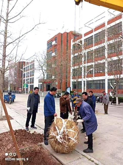 活动开始,后勤服务中心第三党支部群工委员栗志录以“我为校园添春意”为题为大家上微党课。随后大家拿起手中的工具,扶苗下坑、下铲埋土、踩实浇水......一棵又一棵海棠树、白蜡树、红叶李、银杏树,在大家的欢声笑语中纷纷挺拔站立。经过2个多小时的奋战,大家不怕辛苦、不怕劳累,齐心协力,以饱满的热情保质保量完成了校园树苗补栽任务。
