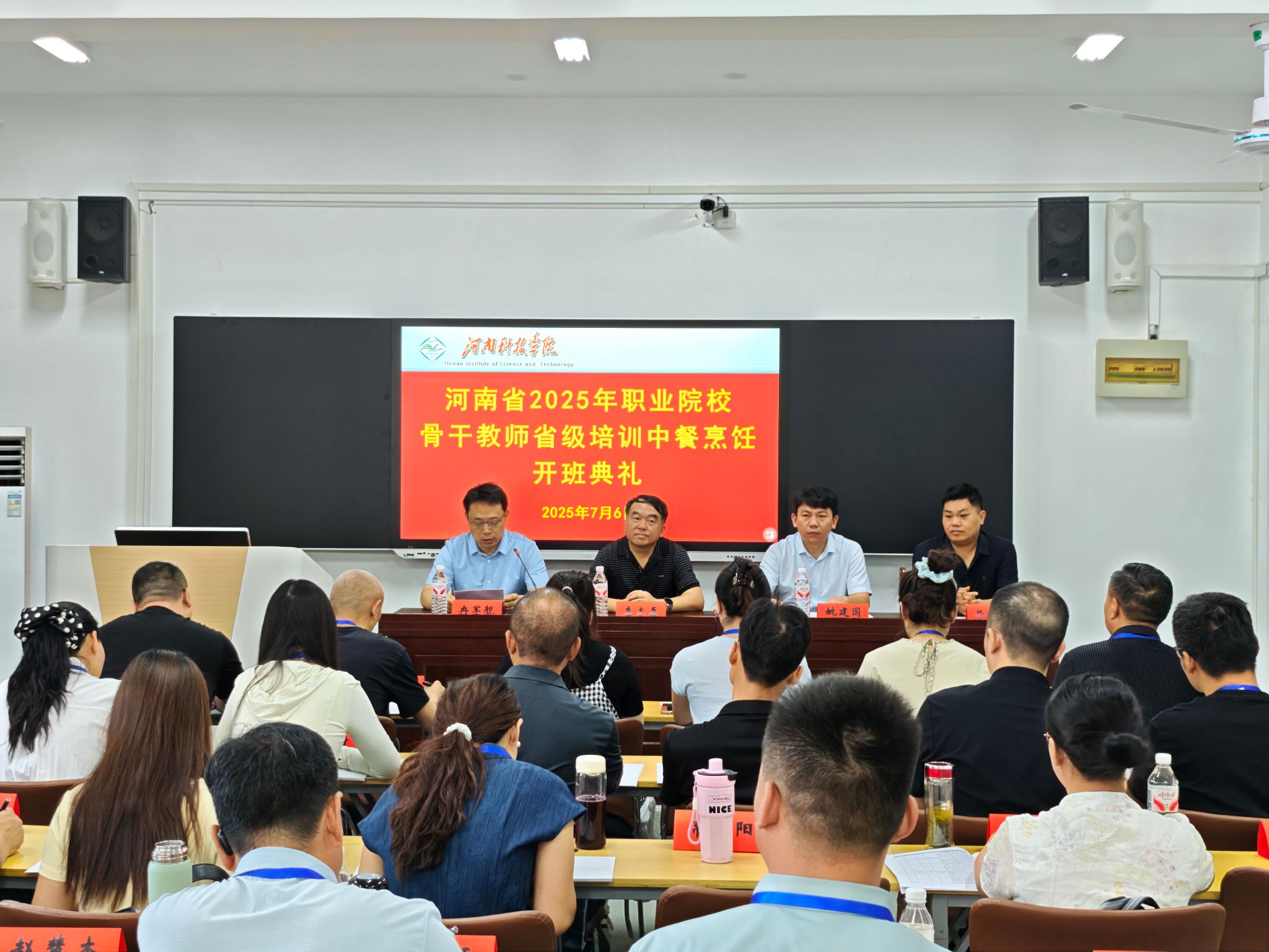7月6日上午,河南省2025年职业院校骨干教师中职中餐烹饪省级培训班举行开班典礼,食品学院院长李光磊、副院长冉军舰,教育培训中心副主任姚建国,以及来自全省各中职院校的30名参训学员和班主任参加了开班仪式,开班典礼由冉军舰主持。