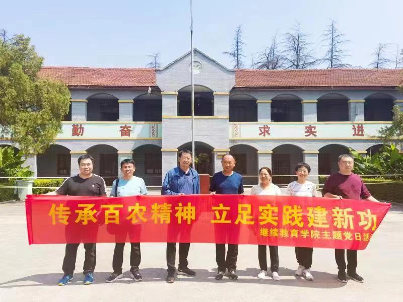 为持续推动主题教育走深走实,把学习成果转化为推动继续教育工作的实际成效,7月26日,继续教育学院党总支赴辉县校区开展“牢记嘱托使命 传承百农精神”主题党日活动,学院领导班子成员和全体党员参加。