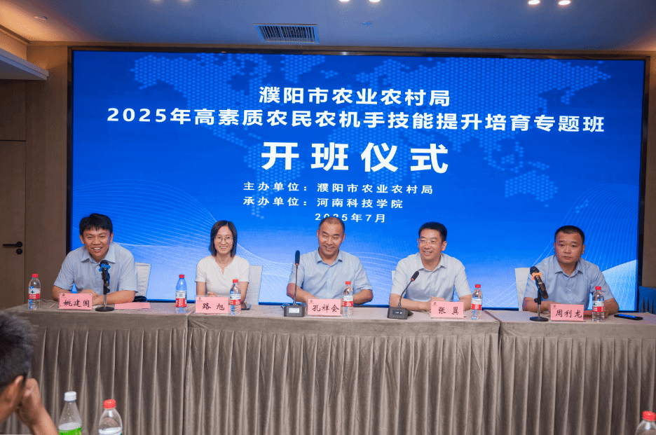 7月26日上午,濮阳市农业农村局2025年高素质农民农机手技能提升培育专题班开班典礼举行。濮阳市农业农村局党组成员、副局长孔祥会,科教科科长路旭,农机科科长周利龙,河南科技学院继续教育学院院长、教育培训中心主任张翼,教育培训中心副主任姚建国,以及50名参训学员共同参加了此次开班典礼。开班典礼由姚建国主持。