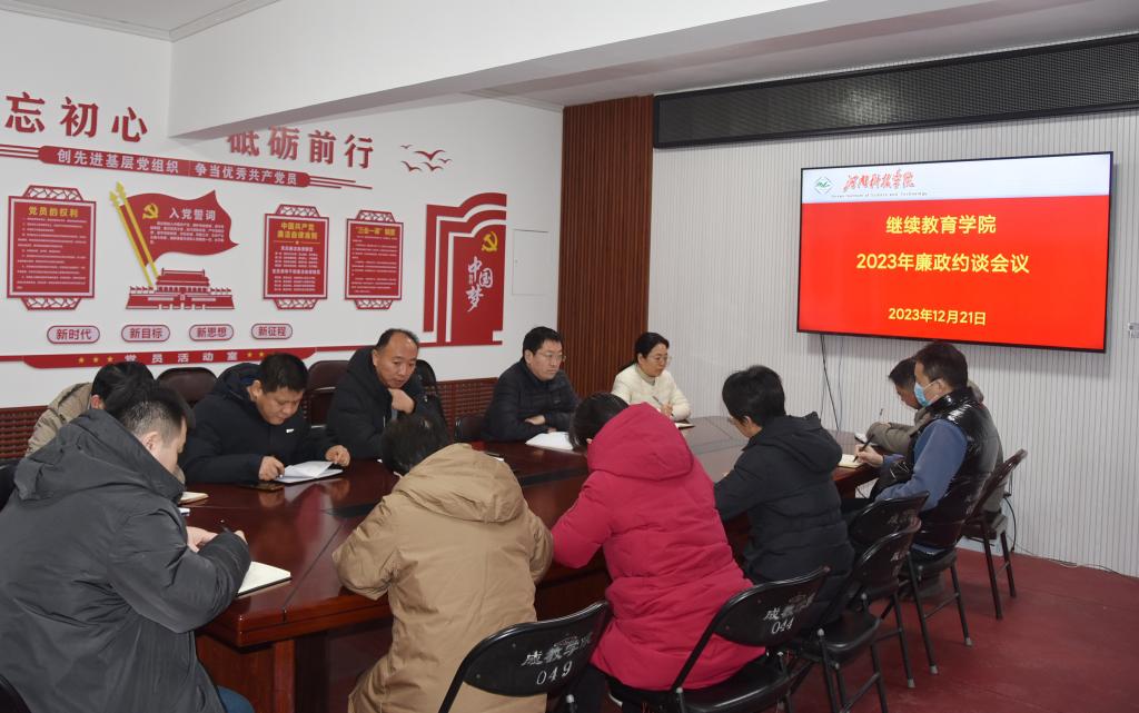 为进一步加强党风廉政建设,提高继续教育学院干部的廉洁自律意识和拒腐防变能力,12月21日上午,继续教育学院在二楼会议室召开集体廉政约谈会议,副科级以上干部参加。会议由学院党总支书记郭东升主持。