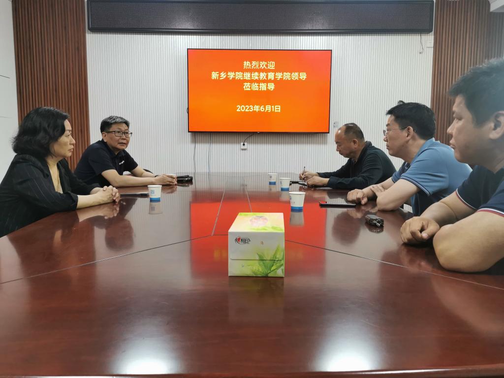 郭东升代表继续教育学院对新乡学院继续教育学院院长一行来访表示热烈欢迎,张翼简要介绍了学院的学历教育、非学历培训、社会培训、技能鉴定工作、品牌特色、办学理念、社会服务等情况,并重点交流了非学历培训以及社会培训的推进情况。