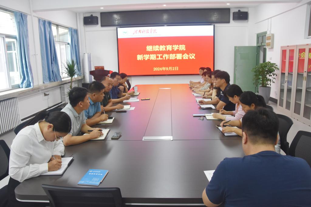 新学期开启新征程,新目标引领新方向。为确保新学期学院各项工作平稳有序推进,9月2日上午,继续教育学院新学期工作布置会议在学院二楼会议室召开,学院班子成员及全体教工参加了会议。会议由党总支书记郭东升主持。