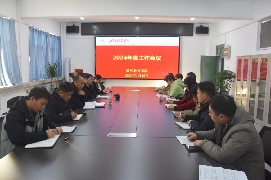 1月10日下午,继续教育学院在综合实验楼D段202会议室成功召开了2024年度工作会议。此次会议旨在总结2024年度的工作成果,并对2025年的重点工作任务进行部署和规划,学院全体教职工参加了会议,会议由学院党总支书记郭东升主持。