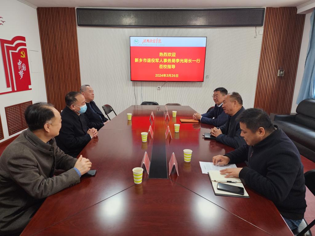 3月26日,新乡市退役军人事务局党组成员、副局长李光一行3人,来到我校调研指导退役军人培训工作。继续教育学院领导班子部分成员参加了座谈和调研。会议由党总支书记郭东升主持。