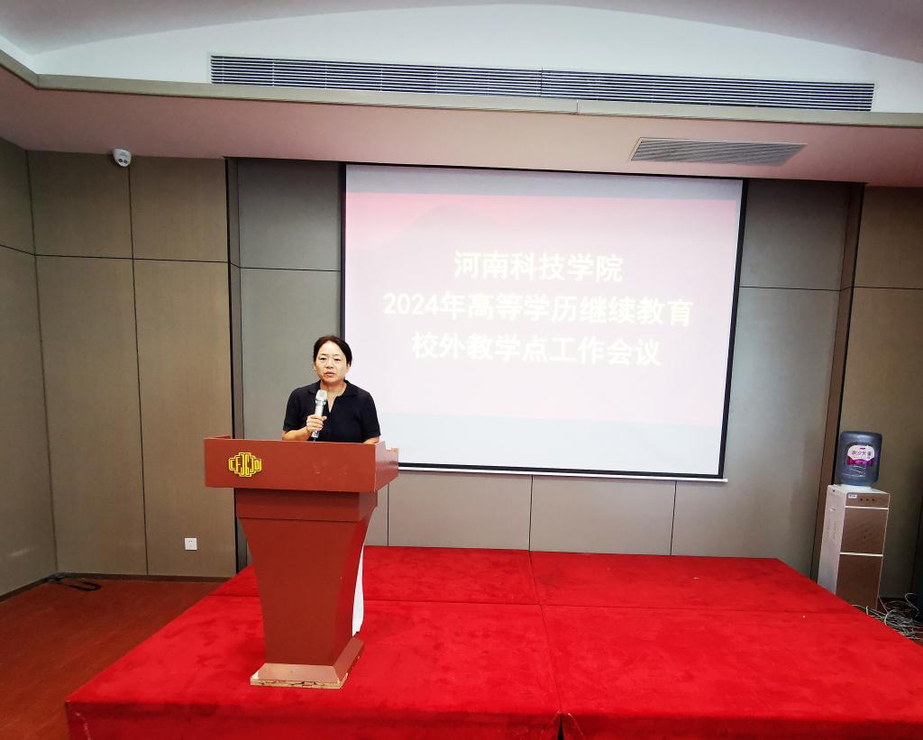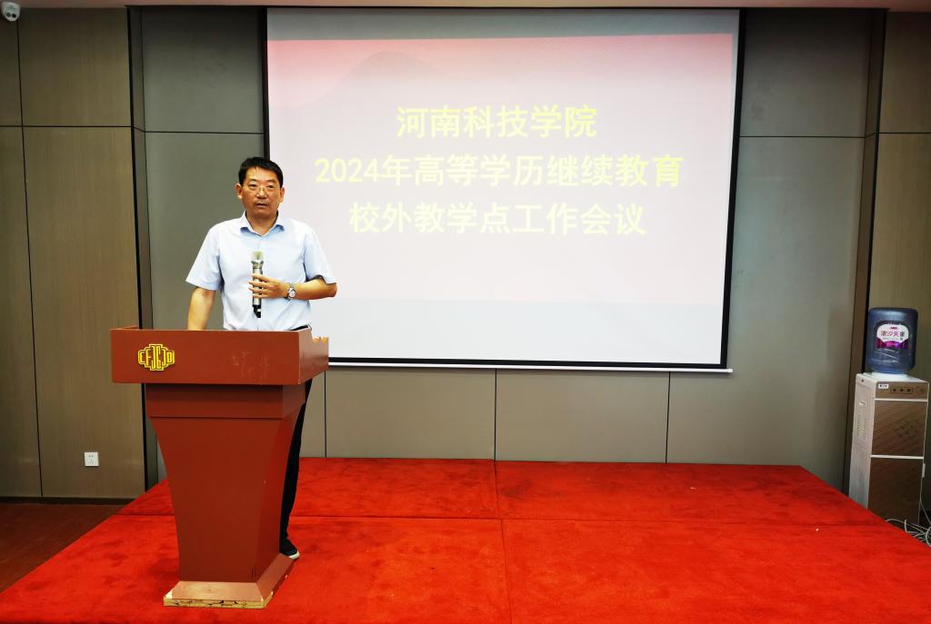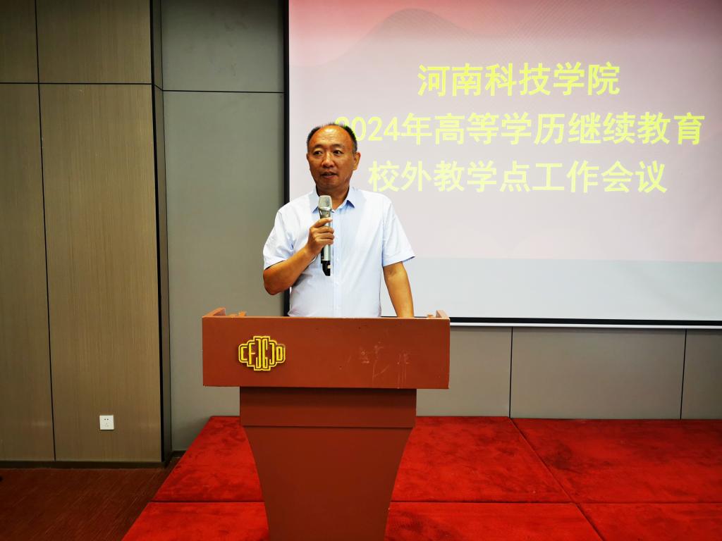 继续教育学院党总支书记郭东升首先对参加会议的各教学点人员表示欢迎,并向承办此次会议的郑州平原邮电中等专业学校的各位领导表示感谢。随后,详细介绍了学校高等学历继续教育的发展历程、取得的成就及发展愿景。希望大家加强彼此沟通交流,坚持高质量发展理念,校站同心,同向同行,扎实做好招生、教学和其它学生服务与管理工作,积极推动学校高等学历继续教育规范、有序、健康发展。