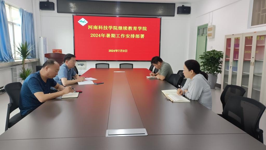 7月9日上午,继续教育学院在实验楼D段202会议室召开2024年暑期工作安排部署会议,班子成员参加会议,会议由党总支书记郭东升主持。