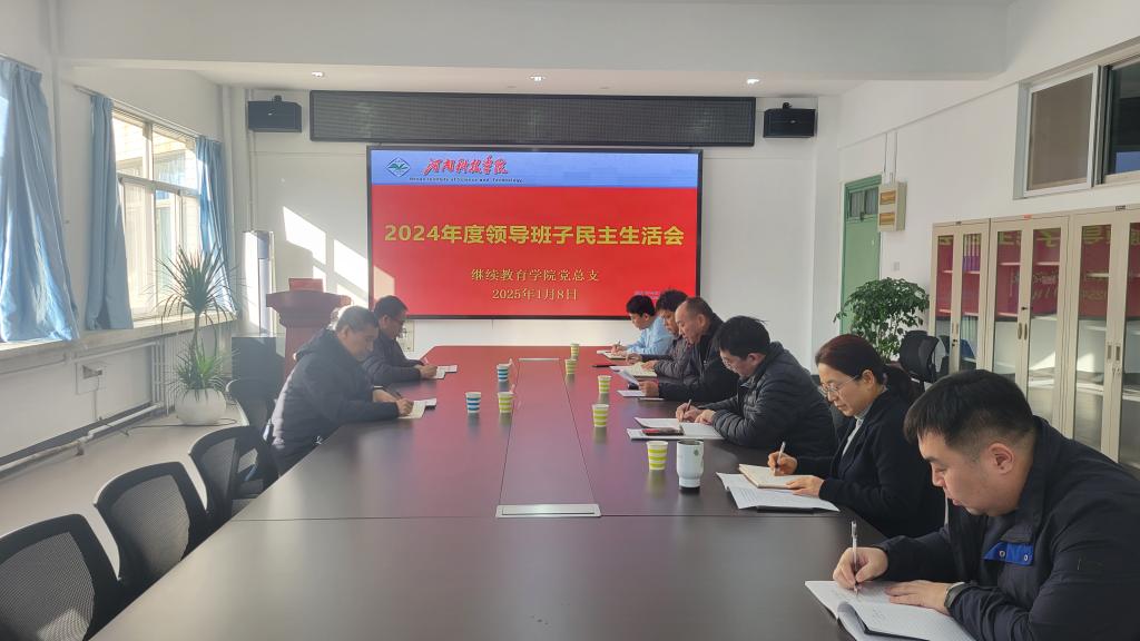 1月8日下午,继续教育学院在实验楼D202会议室召开领导班子2024年度专题民主生活会,学院全体党政领导班子成员参加会议,学校2024年度民主生活会督导组第三督导组张玉新、雷晓环到会指导。