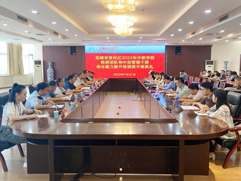 7月27-8月2日,受宣城市宣州区教育体育局委托,为提升中职学校教研团队和中层管理干部综合素养和业务能力,我校教育培训中心为其开展了培训工作,宣州区教育体育局副局长袁长清带领70余名中职学校教研团队和中层管理干部参加培训并顺利结业。