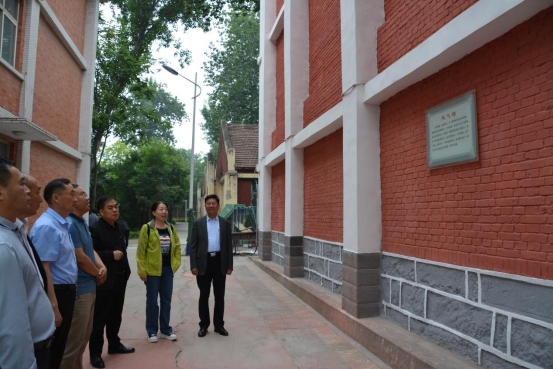在辉县校区校园内,党总支书记郎瑞红同志带领大家一起参观辉县校区的标志性建筑,和大家一起回顾了我校80余年发展的光辉历程。来到志气楼前,郎瑞红和老教师李军生一起讲述师生自己动手建设校园的感人故事;在工字楼前,与大家重温了百泉校区早期办学的峥嵘岁月。大家通过听讲和参观,进一步了解了我校的艰辛办学历程和辉煌成就,更加深刻感悟到了自立自强、艰苦奋斗的“百农精神”。
