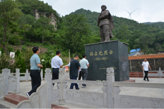 在林州市临淇镇占元村,大家参观了孙占元烈士旧居,了解了烈士的英雄事迹。在孙占元烈士广场,全体党员向烈士雕像鞠躬致敬,敬献鲜花,重温入党誓词。