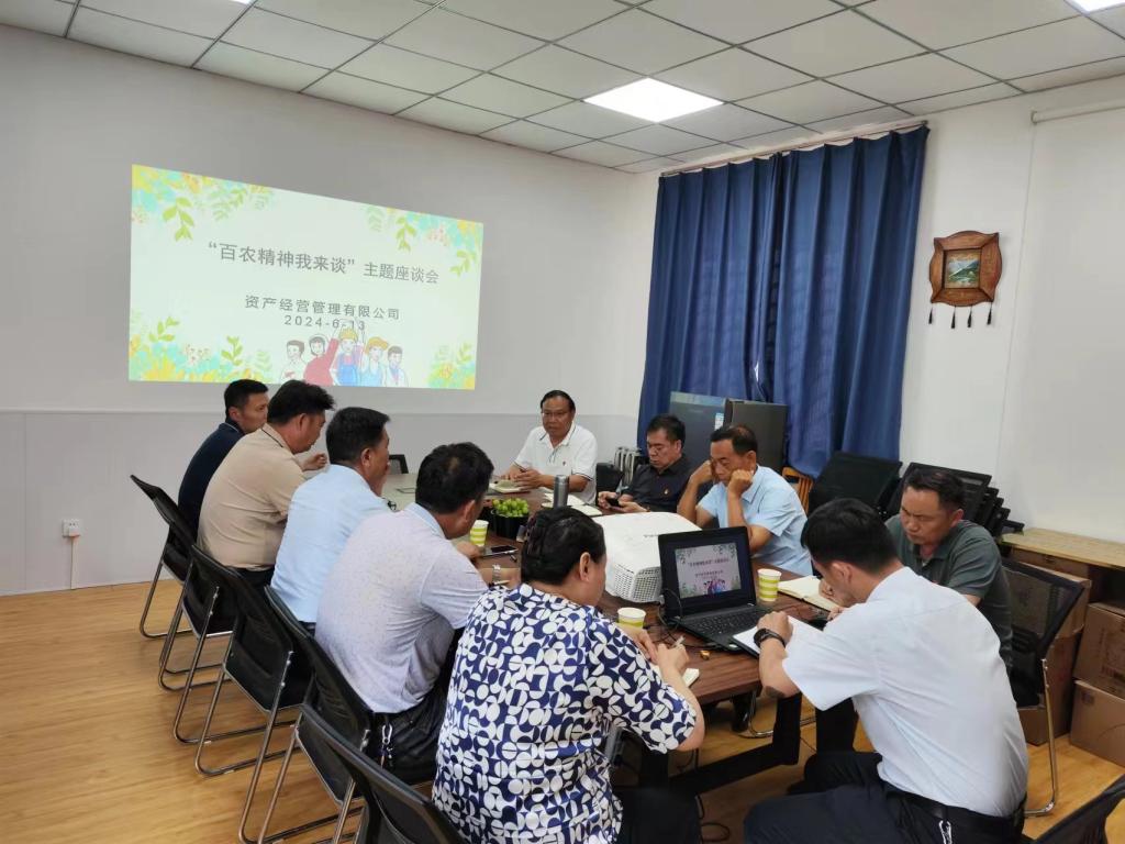 6月13日下午,资产公司在公司会议室召开“百农精神我来谈”主题座谈会,座谈研讨“百农精神”。报告会邀请原退休老领导参加,公司党政领导、部分老教师、河南百农种业有限公司相关负责人参加了座谈会。座谈会由资产公司党总支书记郎瑞红主持。