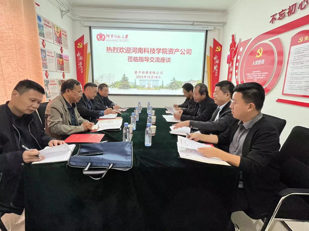 交流会上,双方介绍了各自的发展概况,河南师范大学资产公司党总支书记张新文、总经理孟超介绍了河师大资产公司的发展思路及印象师大校园文创项目等工作。河南科技学院资产公司总经理王锐重点介绍了我校科研成果转化工作取得的成绩。双方还围绕财务审计、商铺租赁、公司对控股公司的管理及校园文创开发管理等工作进行了深入交流。随后,大家一起实地考察了印象师大文化传播有限公司。