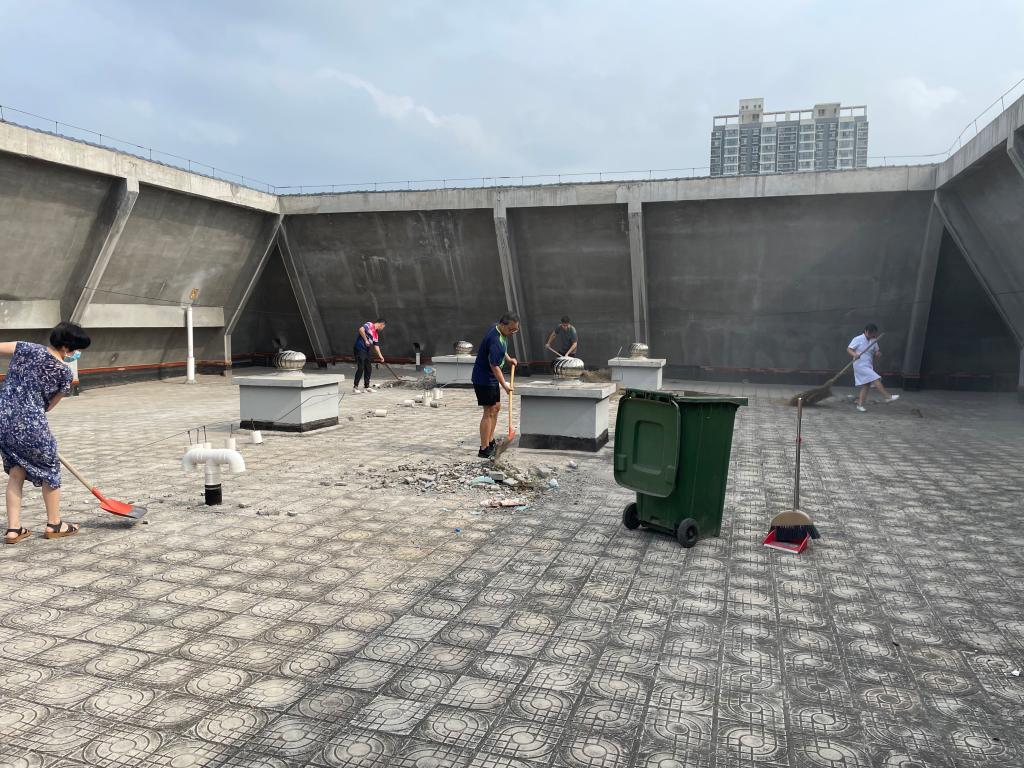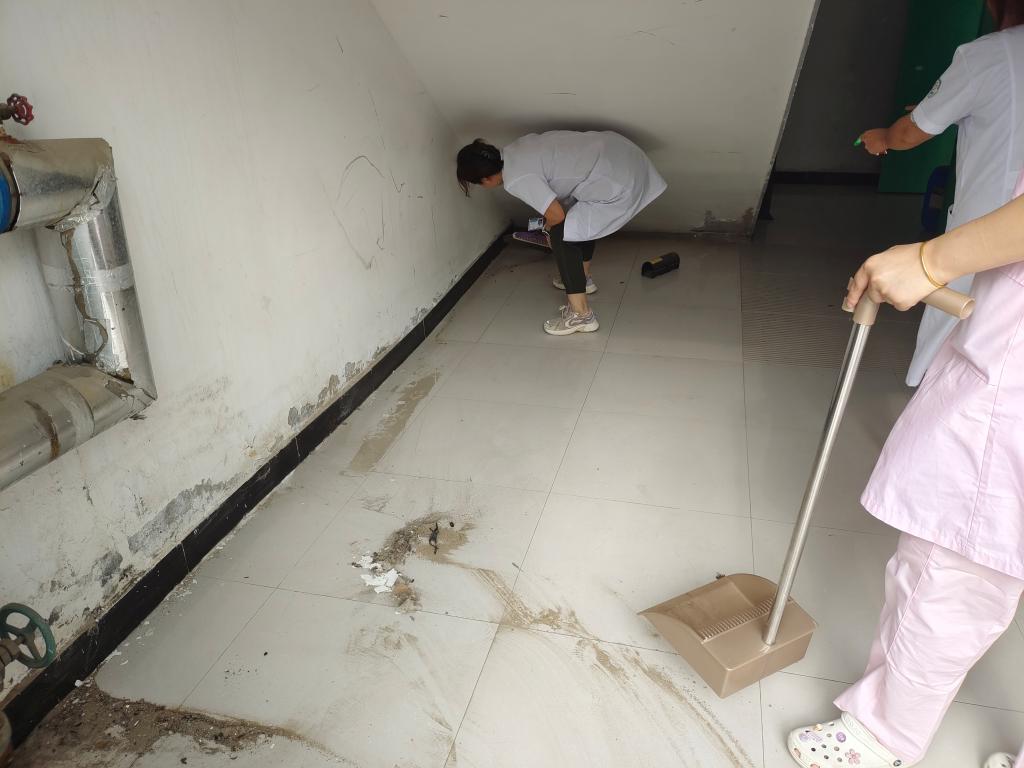 活动中,党员干部及在岗人员发扬不怕脏、不怕累的精神,清理地面杂草、冲洗窗纱、清除雨水管道和屋顶杂物,疏通排水管、将防汛沙袋摆放到位,在清理卫生死角同时,做好防汛物资准备工作。