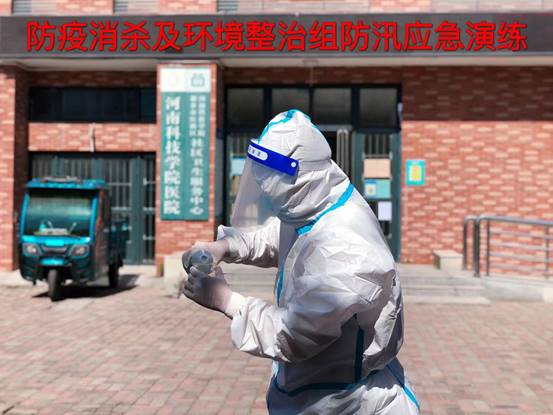6月14日上午,在校园内进行防汛消杀现场演练。演练第一环节由演练领导小组副组长李艳丽讲解演练流程;第二环节消杀人员按要求配制消杀药液,对医院、宿舍、地下室、公共卫生间等重点场所进行消杀演练,做到不留死角,彻底消杀;第三个环节总结本次演练经验及不足,完善消杀及环境整治方案。
