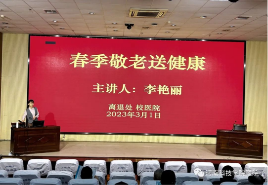 3月1日下午,离退处与校医院联合在图书馆一楼会议室举办《春季敬老送健康》主题讲座。讲座由校医院副院长李艳丽主讲。