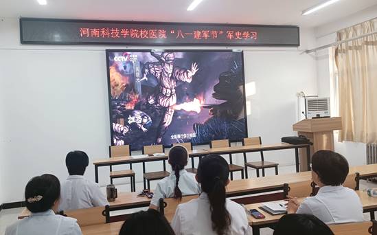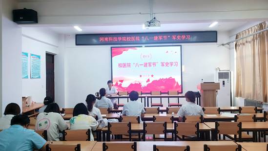 在中国人民解放军建军95周年之际,为发扬和继承老一辈革命者的爱国主义精神,增强党员勇作先锋、无私奉献的道德观念,用榜样的力量引导同志们在今后的工作、学习、生活中,践行时代先锋精神。8月1日下午,院长张兰荣带领校医院全体党员就建军节的历史来源、诞生之地、军旗与首个节日、节日活动及相关歌曲等四部分进行军史学习。