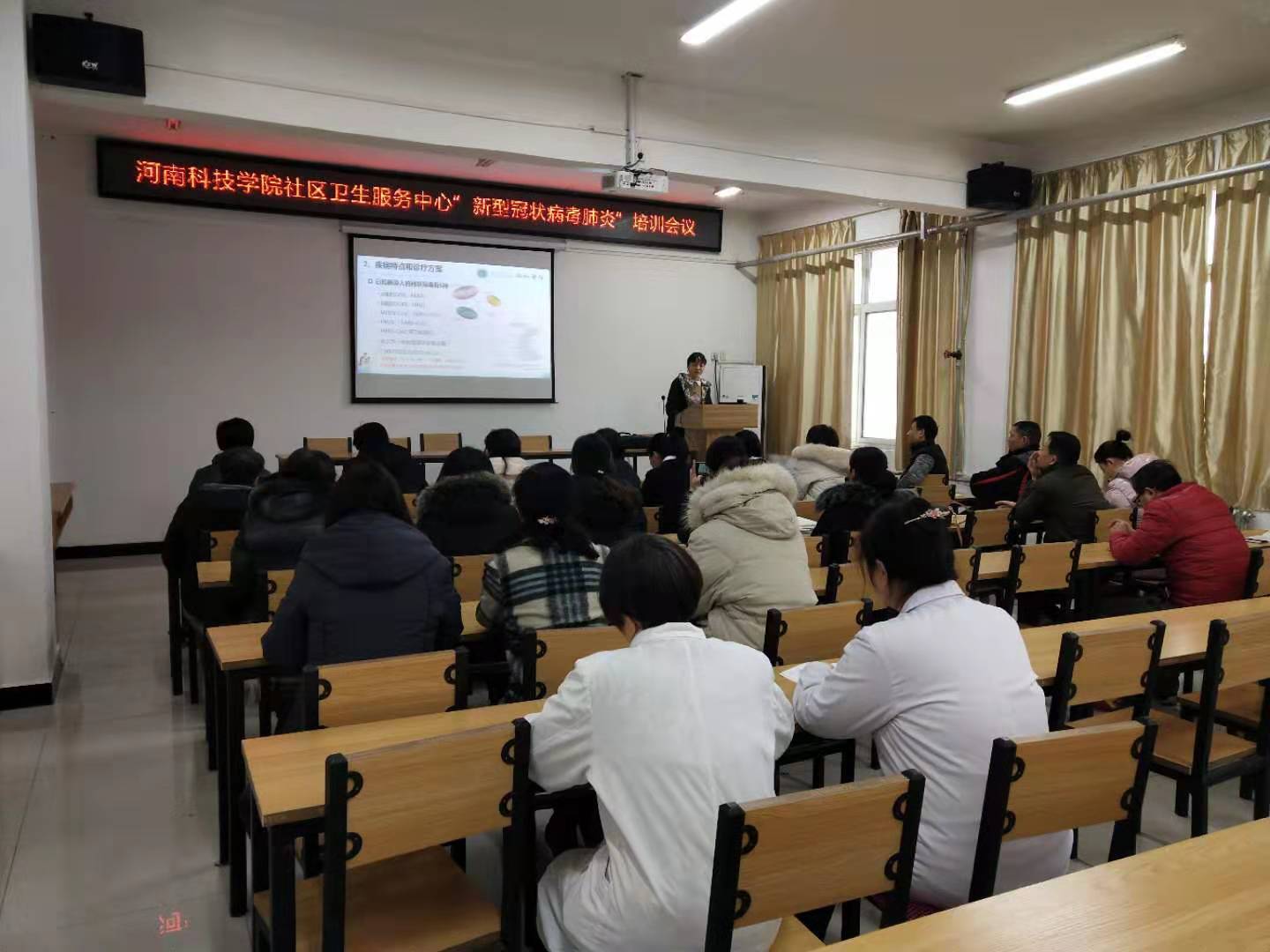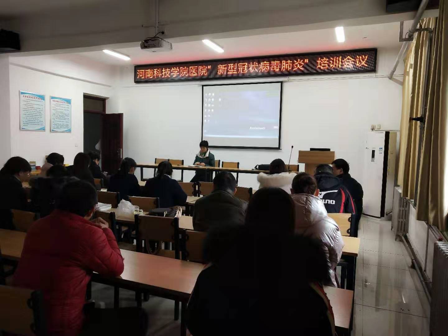 1月21日下午校医院紧急召开新型冠状病毒肺炎防控培训会议,全体职工职工参加,校医院院长张兰荣传达上级会议精神及防控工作部署,强调要坚持科学防控,有效应对疫情,采取综合防控措施。副院长李艳丽从新型冠状病毒肺炎的流行病学、传播途径、疾病特点、诊疗方案、防护措施、疫情上报等方面为大家做了培训。