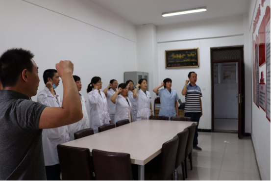 7月1日下午17时,校医院全体党员在校医院党支部书记胡付广的带领下重温宣誓仪式,校医院党支部两名入党积极分子列席。与会党员同志纷纷表示,通过重温入党誓词,再一次体会到了作为一名共产党员的责任感和使命感,在今后的工作中一定以昂扬的士气、进取的心态和创先争优的精神践行入党誓词,以踏实的工作态度和优秀的业绩为校医院的发展做出自己应有的贡献。入党积极分子们表示,通过参加此次宣誓仪式,感受到了成为一名共产党员的光荣与神圣,希望以后能够继续严格要求自己,接受组织的考验,争取早日入党。