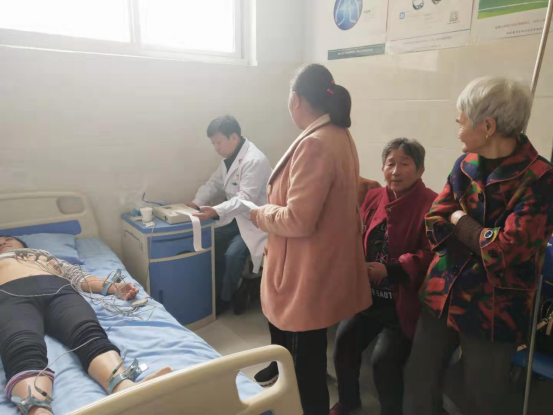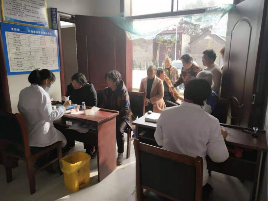 为了切实有效落实帮扶工作,校医院院长张兰荣、副院长潘小郑与闫庄村卫生室院长积极沟通,在充分了解卫生室目前阶段帮扶工作的重点和难点后,立刻投入到此次义诊中。义诊现场,前来问诊的群众络绎不绝。校医院专家团队热情细致地为群众解答关于血糖、血压、心电图、健康咨询等相关问题。