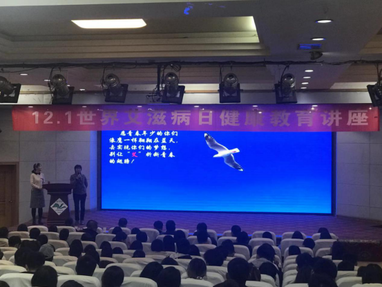 11月26日下午3:00,第一场“12.1艾滋病健康教育知识讲座”在图教201拉开帷幕,各学院副书记、辅导员及学生代表共310余人参加了讲座。讲座开始前,校医院院长张兰荣简单介绍了校医院情况,并指出防艾抗艾的重要性。接着,校医院副院长李艳丽邀请在座学生参加不记名问卷,了解师生个人基本情况、对于防艾抗艾知识的掌握情况、以及对艾滋病其他相关问题的看法。之后李院长结合问卷,按照大家对艾滋病相关问题的真实反映进行了由浅入深的讲解。李院长结合大学生实际,宣讲了艾滋病基本知识、传播途径及流行趋势,阐述了艾滋病对自己、家庭及社会的危害,提出了有效防控艾滋病的措施和建议,结合实际案例深入地为我校的师生上了一堂生动的健康教育课。此外,李院长倡导大家尊重艾滋病患者、尊重他人的个人选择、尊重和维护他人隐私。随后,进行了艾滋病知识抢答活动并进行了健康讲座满意度调查,大家踊跃参加、积极配合。讲座的尾声,张院长致结束语,号召大家正视艾滋病,从自我做起防艾抗艾。讲座结束后,进行了“百名学子联合签名活动”,签名现场气氛热烈。