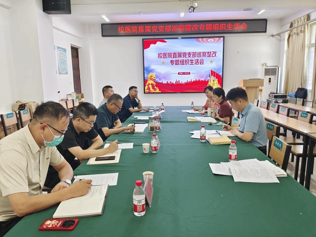 8月14日上午,校医院直属党支部在医院六楼会议室召开巡察整改专题组织生活会。第七轮校内巡察第二巡察组组长刘明鹏、副组长李印,巡察工作办公室副主任李斌,党委组织部副部长李鑫良,纪委(监察专员办公室)第二纪检监察室主任李军庆到会指导。会议由直属党支部书记申长奎主持。