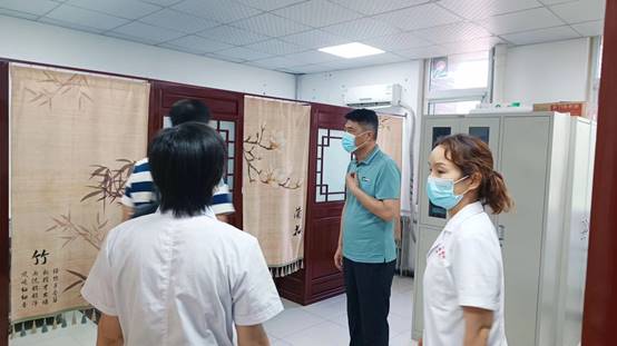 8月4日上午,红旗区卫健委党组书记苟启鹏、中医科科长刘德平到校医院指导中医馆建设工作。