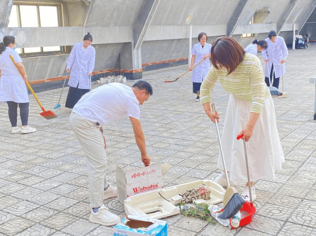 5月27日下午,校医院直属党支部开展“天台清障卫环境 白衣聚力护健康”主题党日活动,通过环境整治专项行动彰显党员责任担当。