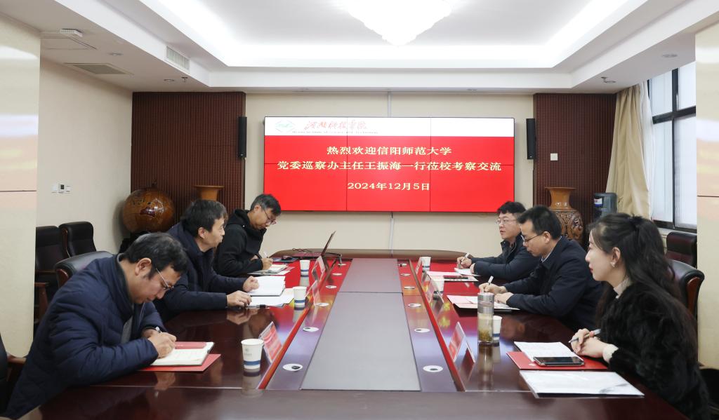 12月5日下午,信阳师范大学党委巡察办主任王振海一行来我校交流考察,巡察办全体人员在办公楼1111会议室参加交流。