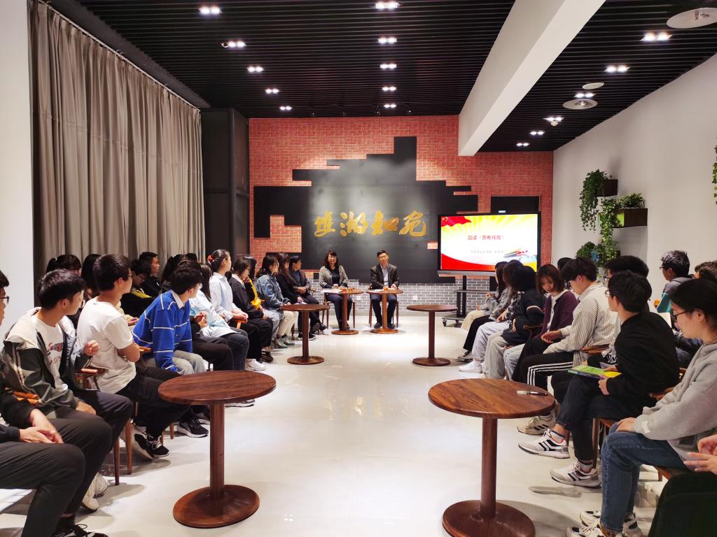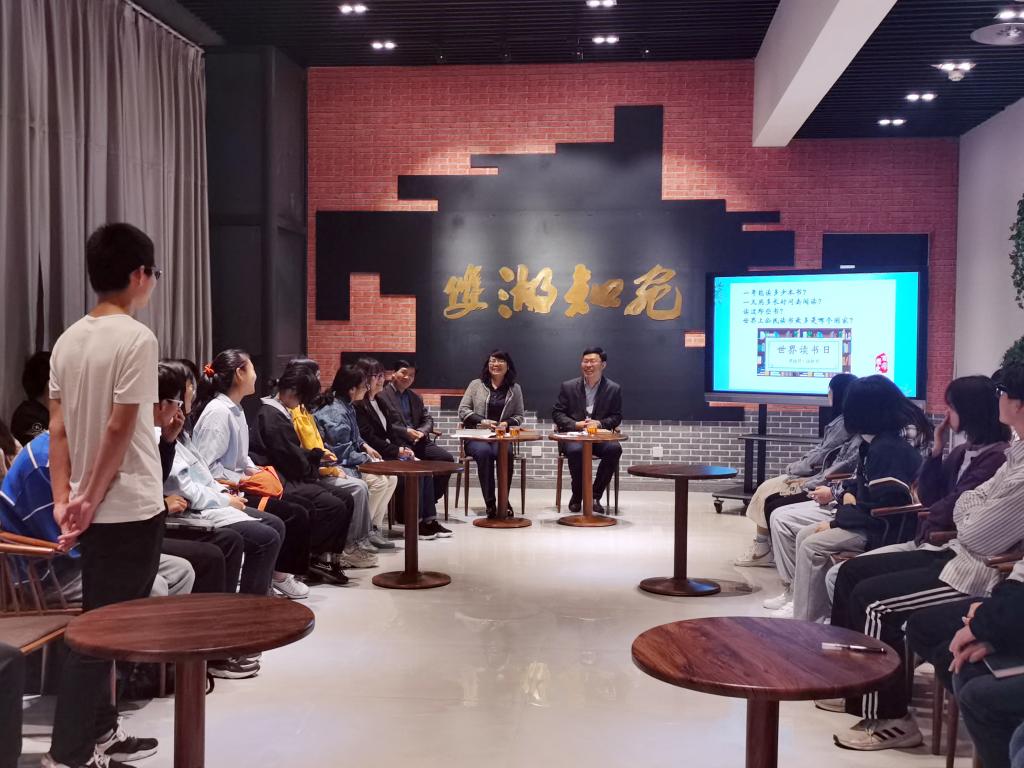 4月26日晚上,第十三期双湖知苑活动在图书馆五楼举行。本次活动以“百年党史 你我共读”为主题,特邀马克思主义学院副院长孙喜英和副教授张希中担任主讲嘉宾,图书馆副馆长孙用明出席此次活动,来自各学院的57名学生参加了活动。