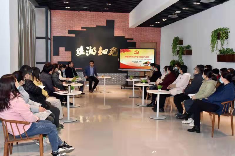 为扎实推进党史学习教育,更好地学习和领会党的十九届六中全会精神实质和丰富内涵,11月25日下午,第十九期双湖知苑在图书馆五楼举行。本期特邀马克思主义学院副院长刘中元做客双湖知苑解读党的十九届六中全会精神。活动由第四党总支书记、图书馆副馆长尤太生主持,图书馆全体职工参加活动。