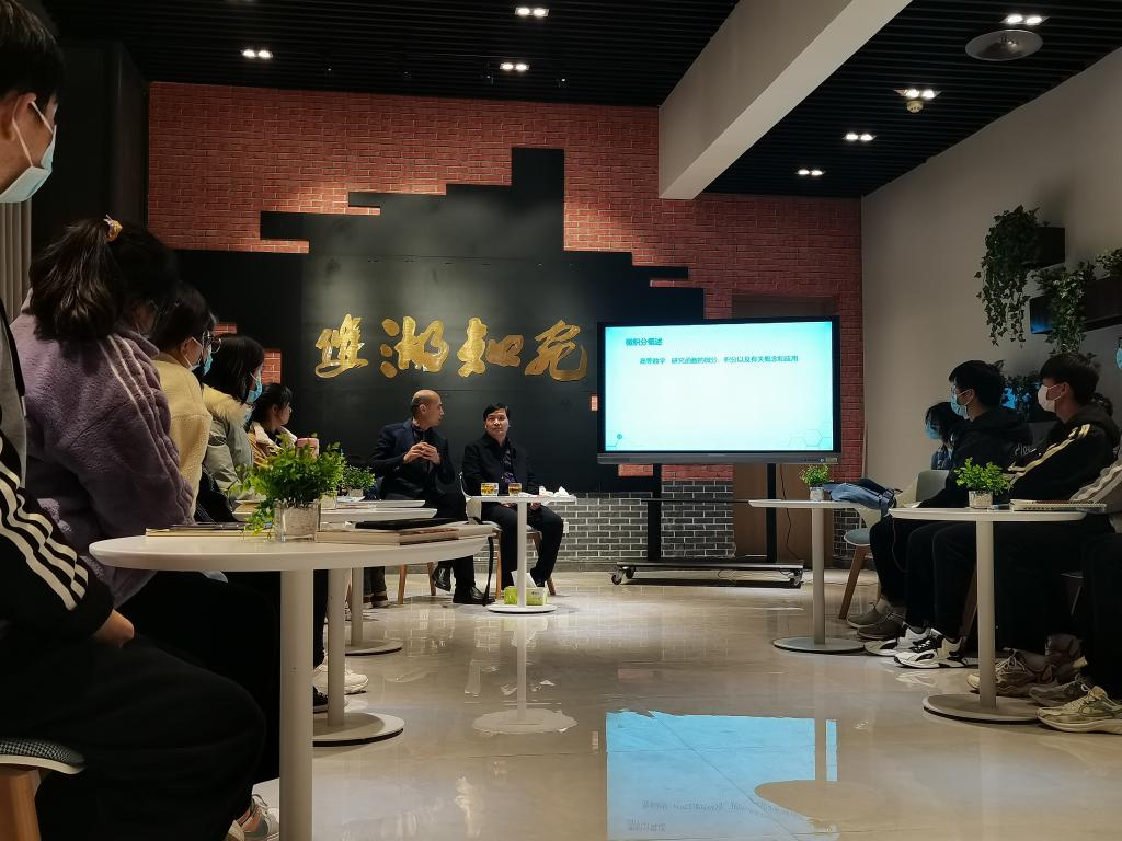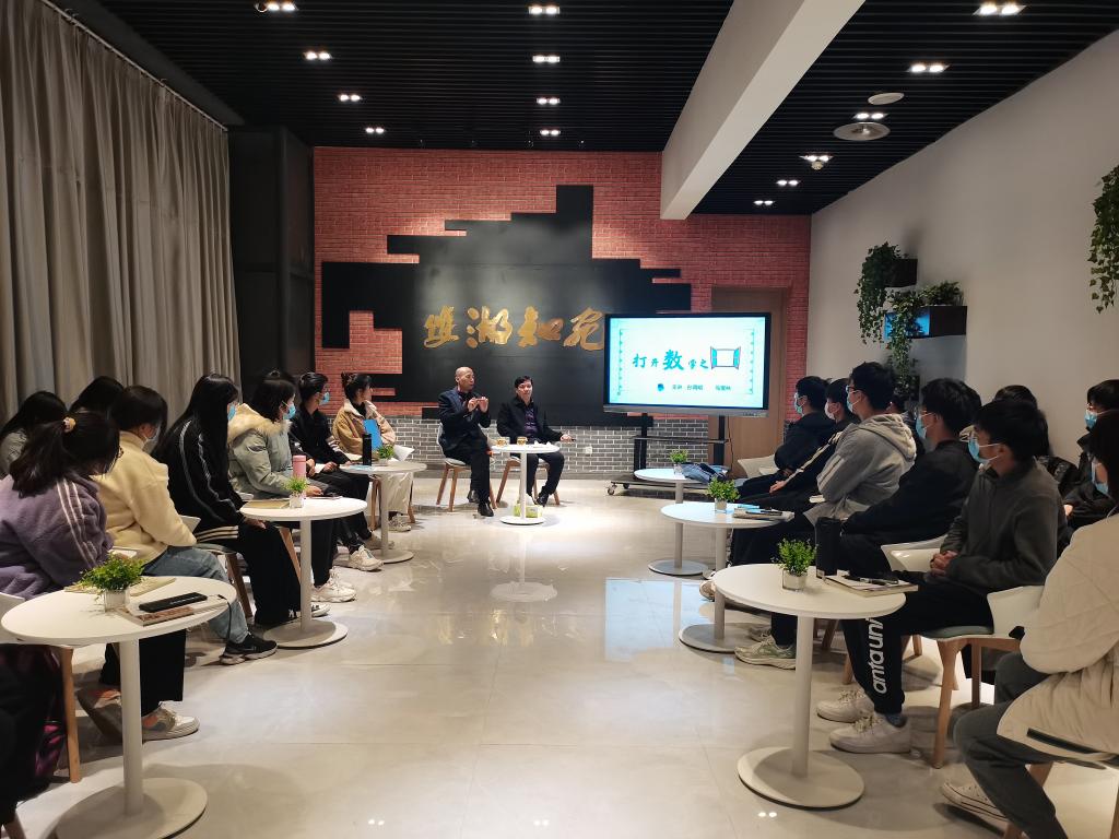 11月19日晚上,第十八期双湖知苑活动在图书馆五楼双湖知苑举行。本次活动以“打开数学之窗”为主题,特邀图书馆副馆长孙用明、数学科学学院副院长马宝林为指导教师,开设有高等数学课程的2021级30余名新生参加了活动。