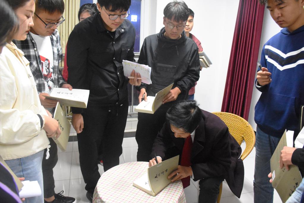 在互动环节,马金友对学生提出的关于如何提高自控能力以及成长中的困惑、疑虑等问题进行了耐心地讲解和指导,并为在场学生签名、赠书。