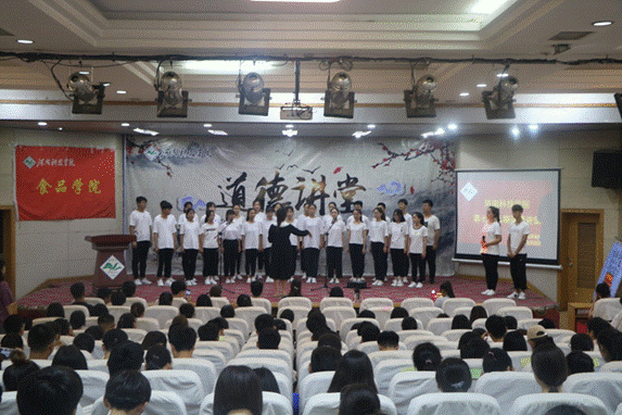 6月5日下午,由校文明办主办、食品学院承办的第七十八期道德讲堂在图教201举行。食品学院党政领导、辅导员及学生代表200余人参加了活动。