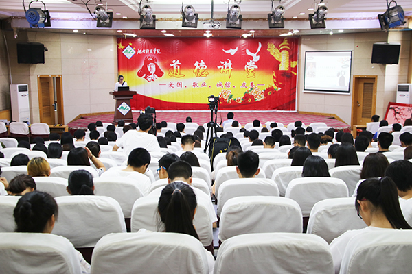 6月14日下午,由校文明办主办、资源与环境学院承办的第六十九期道德讲堂在图教201举行。资源与环境学院师生代表300余人参加了此次活动。