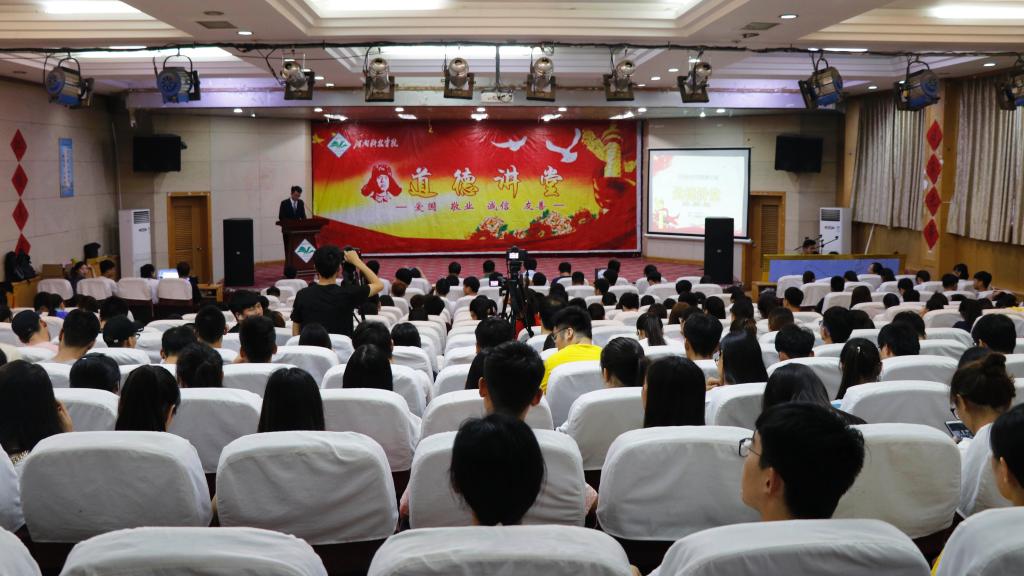 为深入学习贯彻党的十九大精神,积极践行和培育社会主义核心价值观,5月16日晚,由校文明办主办、动物科技学院承办的第六十五期道德讲堂在图教201举行。后勤管理处、校团委、动物科技学院等相关单位负责人和动物科技学院师生代表300余人参加了活动。