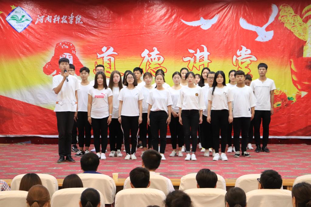 本期道德讲堂以“不忘初心,求真自强”为主题,分为自我反省、学道德模范、筑梦想、唱道德歌曲、发心灵感悟、诵道德经典、送平安吉祥七个环节。活动中,大家共同学习了习近平总书记在北京大学师生座谈会上的讲话精神,对照自身学习生活实际深刻领会了习近平总书记对广大青年提出的四点希望;聆听了学院励志青年何乐乐的先进事迹,观看了音乐情景短剧《最初的梦想》,欣赏了饱含深情的道德经典朗诵。最后,大家在祈愿墙上粘贴了自己对祖国的美好祝愿,表达了自己勇于担当民族复兴大任的信心与决心。