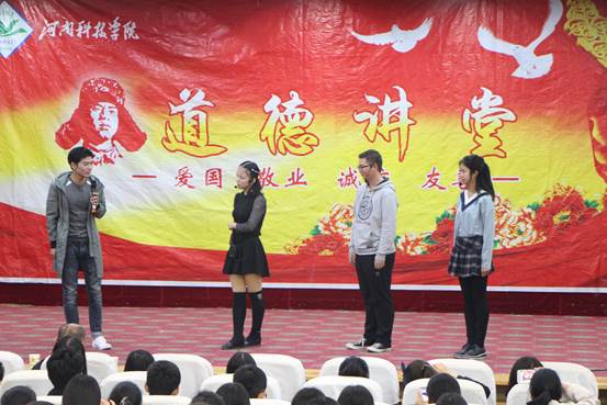 为加强文明诚信意识,构建和谐校园。11月9日下午,由校文明主办、服装学院承办的第五十五期道德讲堂在图教201举行,服装学院师生共300余人参加了活动。