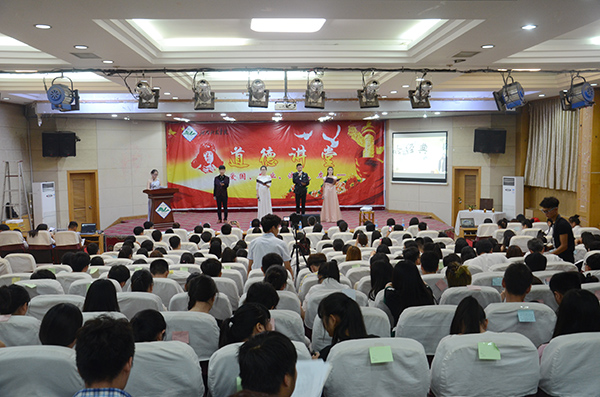 5月17日晚,由校文明办主办、动物科技学院承办的第四十九期道德讲堂在图教201举行。党委学工部、学生处负责人,动物科技学院党政领导、团委书记、辅导员及2016级全体学生参加了活动。
