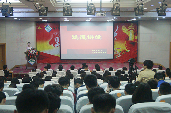 4月8日下午,由校文明办主办、生命科技学院承办的第四十五期“道德讲堂”在图教201举行。生命科技学院党政领导、辅导员及2016级学生代表300余人参加了活动。