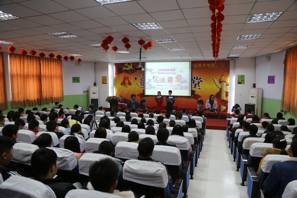 12月10日下午,由校文明办主办,高职学院承办的第二十三期道德讲堂在高职学院报告厅举行。校党委宣传部、后勤管理处等相关单位负责人,高职学院党政领导及师生代表200余人参加道德讲堂。