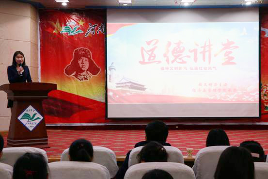 4月11日晚上,由校文明办主办、经济与管理学院承办的第四十六期“道德讲堂”在图教201举行。经济与管理学院党政领导、辅导员及200余名师生参加了活动。