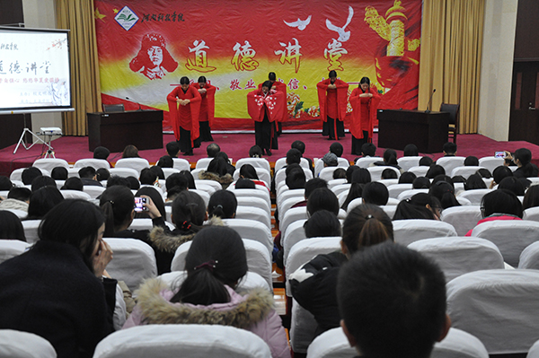 12月16日,由校文明办主办、文法学院承办的第四十一期道德讲堂在行政楼三楼多功能报告厅举行,文法学院党政领导和师生代表300余人参加了活动。