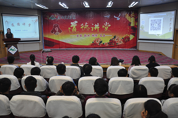 11月4日下午,由校文明办主办、化学化工学院承办的第三十五期“道德讲堂”在图教201举行。化学化工学院相关负责人及化学化工学院师生代表300余人参加了此次活动。