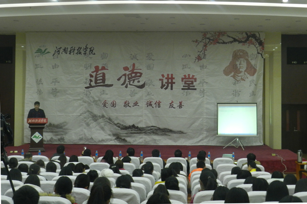 11月30日晚,由校文明办主办、外国语学院承办的第二十期道德讲堂在办公楼三楼多功能报告厅举行。党委宣传部、学生处、后勤管理处、保卫处、外国语学院等单位负责人及外国语学院师生代表300余人参加了道德讲堂。